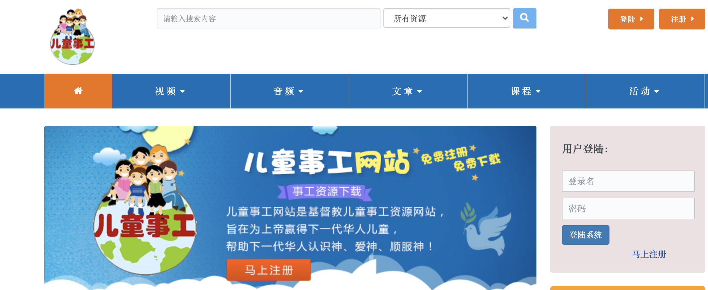 儿童事工网站里包含了视频、音频、文章、课程和活动供主日学老师们参考