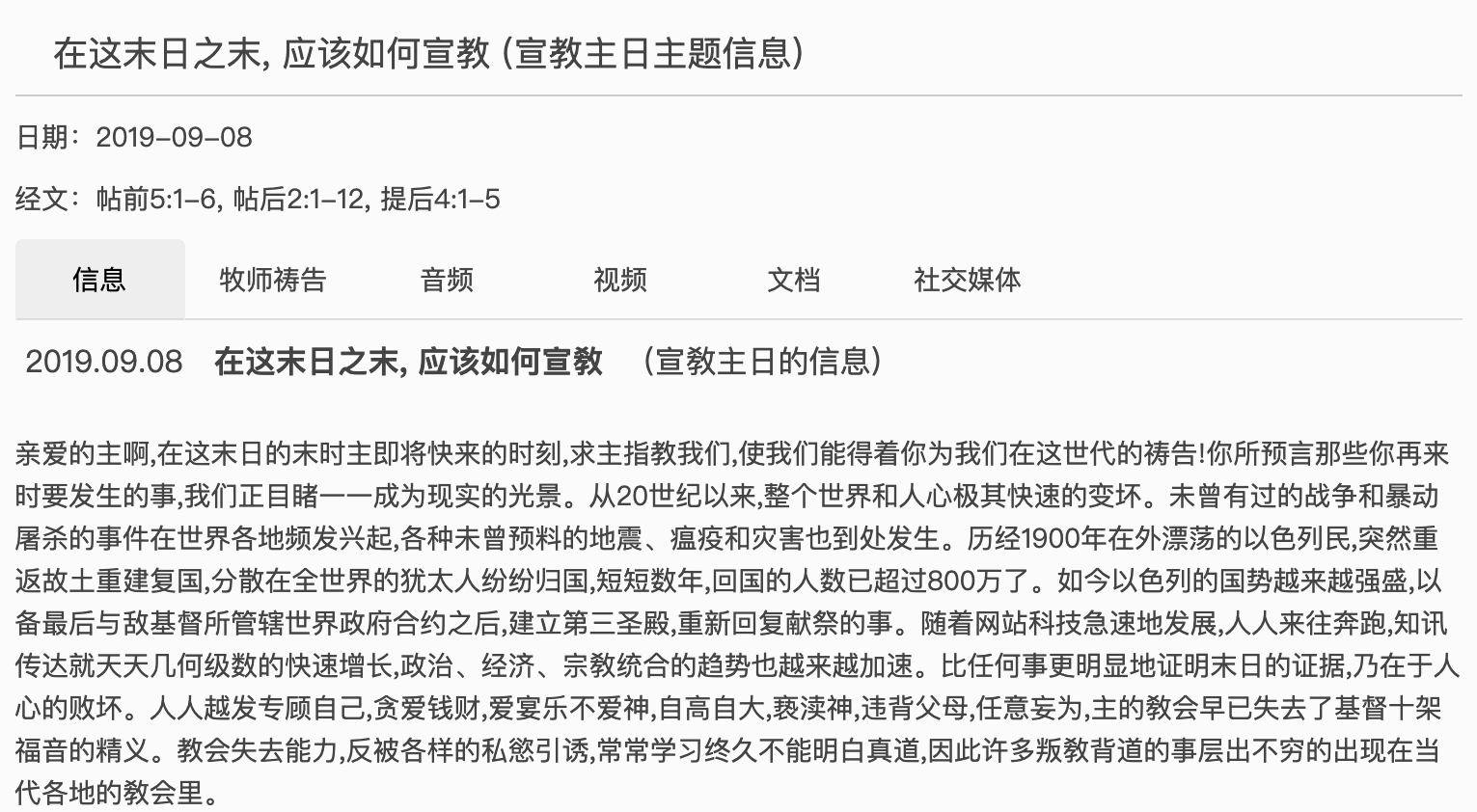 2019.09.08 在这末日之末, 应该如何宣敎 (宣敎主日的信息)