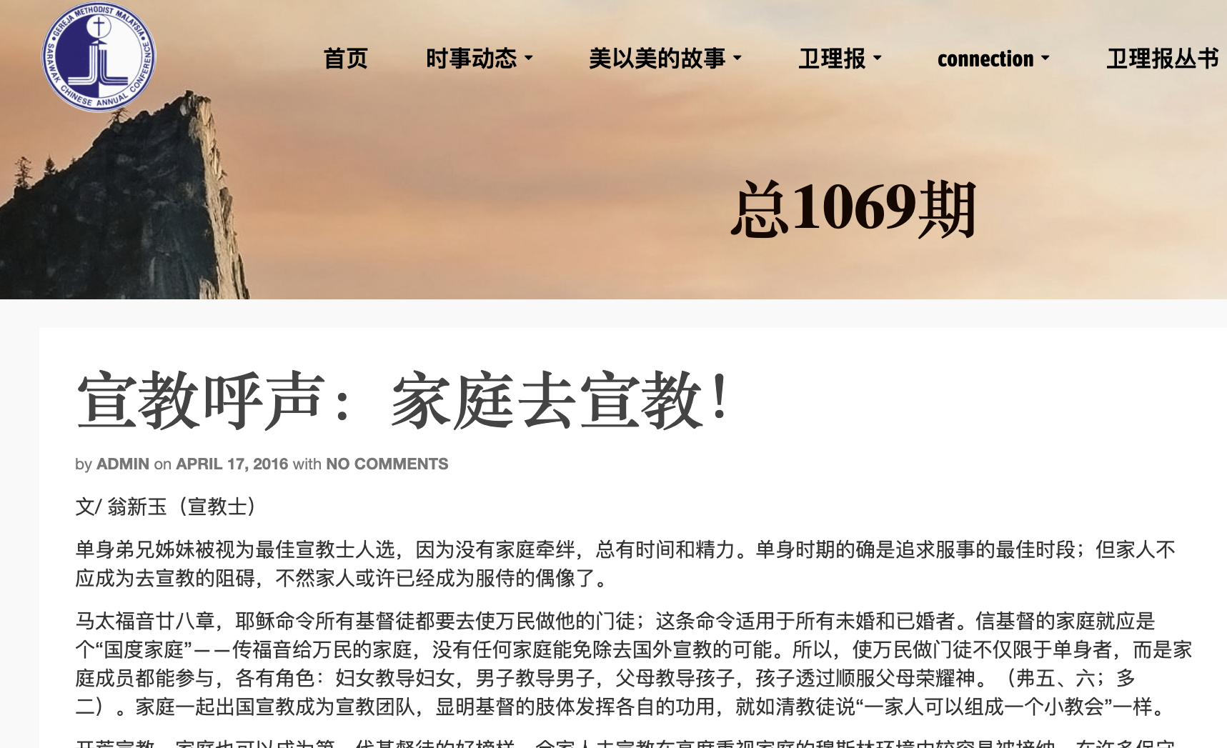 单身弟兄姊妹被视为最佳宣教士人选,因为没有家庭牵绊,总有时间和精力。单身时期的确是追求服事的最佳时段;但家人不应成为去宣教的阻碍,不然家人或许已经成为服侍的偶像了。